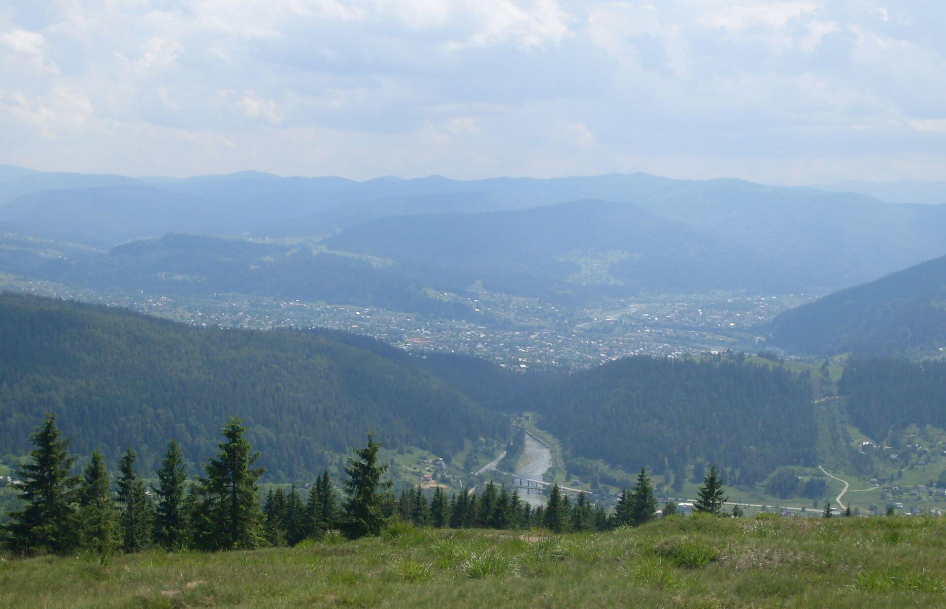 З’їжджаємо з основної автодороги біля рожевої двоповерхової будівлі Микуличинської сільської ради (центр села). Протягом першої частини маршруту дорога майже весь час іде догори, змінюється тільки крутизна підйому. Підготовлений велосипедист зможе здолати все «в сідлі», а новачкам, мабуть, доведеться частину пройти. З полонин, на яких ви опинитеся приблизно через півгодини, відкриваються надзвичайної краси краєвиди на навколишні гори, а в місцевих мешканців можна пригоститися свіжим молоком. На вершині, неподалік базової станції мобільного оператора, траса піде донизу, в долину річки Прутець Чемигівський. На вас чекає чудовий і досить безпечний даунхіл ґрунтовими дорогами, час від часу муситимете зупинятися – полонини доволі рясно перегороджені парканами, аби худоба не втікала до лісу.