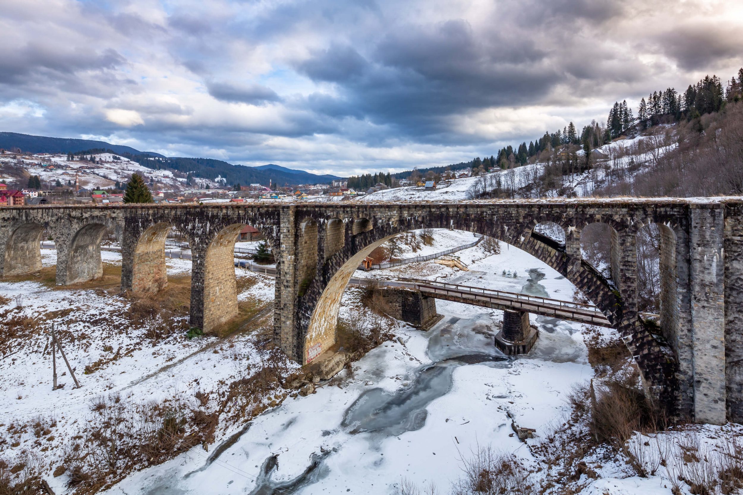 Кожний, хто хоч раз переглядав фільм ”Гаррі Поттер”, мріяв проїхатися на потязі до Гоґвортса через неймовірно красивий міст – Гленфіннанський віадук. Проте не варто поспішати купувати квитки на літак до Шотландії, достатньо приїхати до селища Ворохта. Саме тут на схилах Карпатських гір розкинулося декілька мостів-віадуків, які, на відміну від Гленфіннанського віадуку, збудовані не з бетону і заліза, а із кам’яних брил місцевого ямнянського пісковика. Крім того наші віадуки ще й на 2-3 роки старші від свого відомого шотландського родича. Сама назва віадук походить від двох латинських слів via – шлях та duco – веду, тобто споруда, яка “проводить шлях” через глибокі яри та ущелини. Найвиразнішими елементами даних мостів є арки. Вони надають легкості та величі, підкреслюють унікальність об’єкту, та створюють неймовірне обрамлення при спогляданні крізь них навколишньої природи.